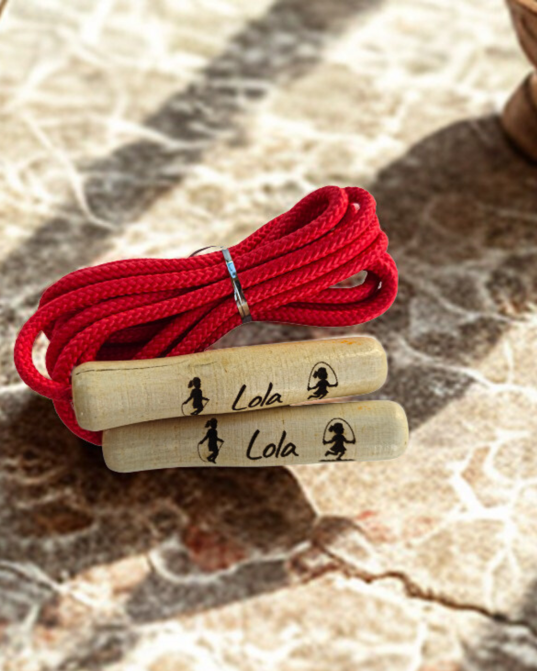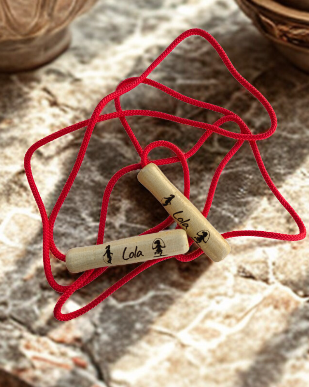Su vibrante cuerda roja destaca por su energía, mientras que sus mangos de madera natural ofrecen un agarre ergonómico y suave, ideal para las manos más pequeñas. Al ser personalizables mediante grabado láser, cada salto se vuelve especial: es el regalo perfecto para motivar a los niños a mantenerse activos con un juguete que lleva su propio sello de identidad.