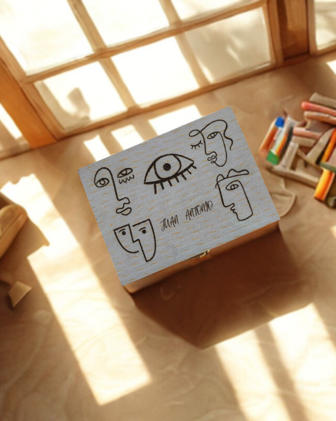 Un Lienzo en la Tapa: El grabado láser permite poner nombres, fechas o iconos, creando un regalo único que fomenta la identidad y el amor por el arte.